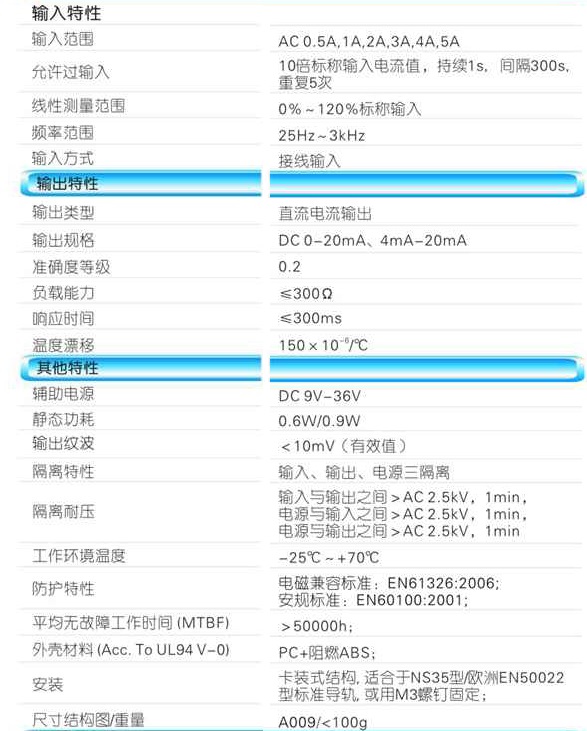 产品采用特制隔离模块,对电网和电路中的交流电流进行实时测量,将其变换为0-20MA或4-20MA直流电流(IZ)输出;具有高精度、高隔离、低功耗、低漂移、温度范围宽、抗干扰能力强、工作电源范围宽等特点。本产品采用卡装式结构,端子接线,安装方便,输入、输出、电源三隔离,适用于电源设备、电力网监测自动化系统、工控监测系统、铁路信号系统等。