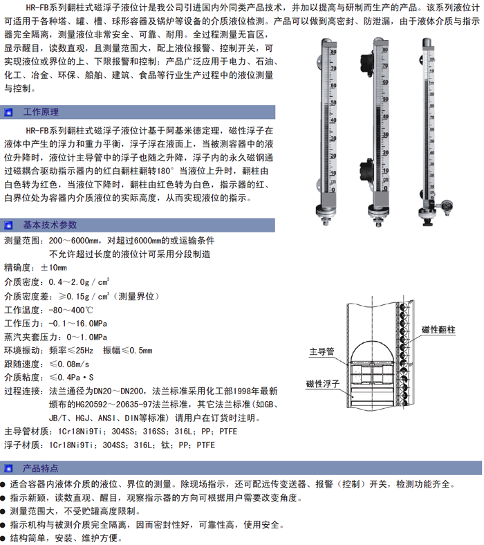 虹润HR-FB系列翻柱式磁浮子液位计