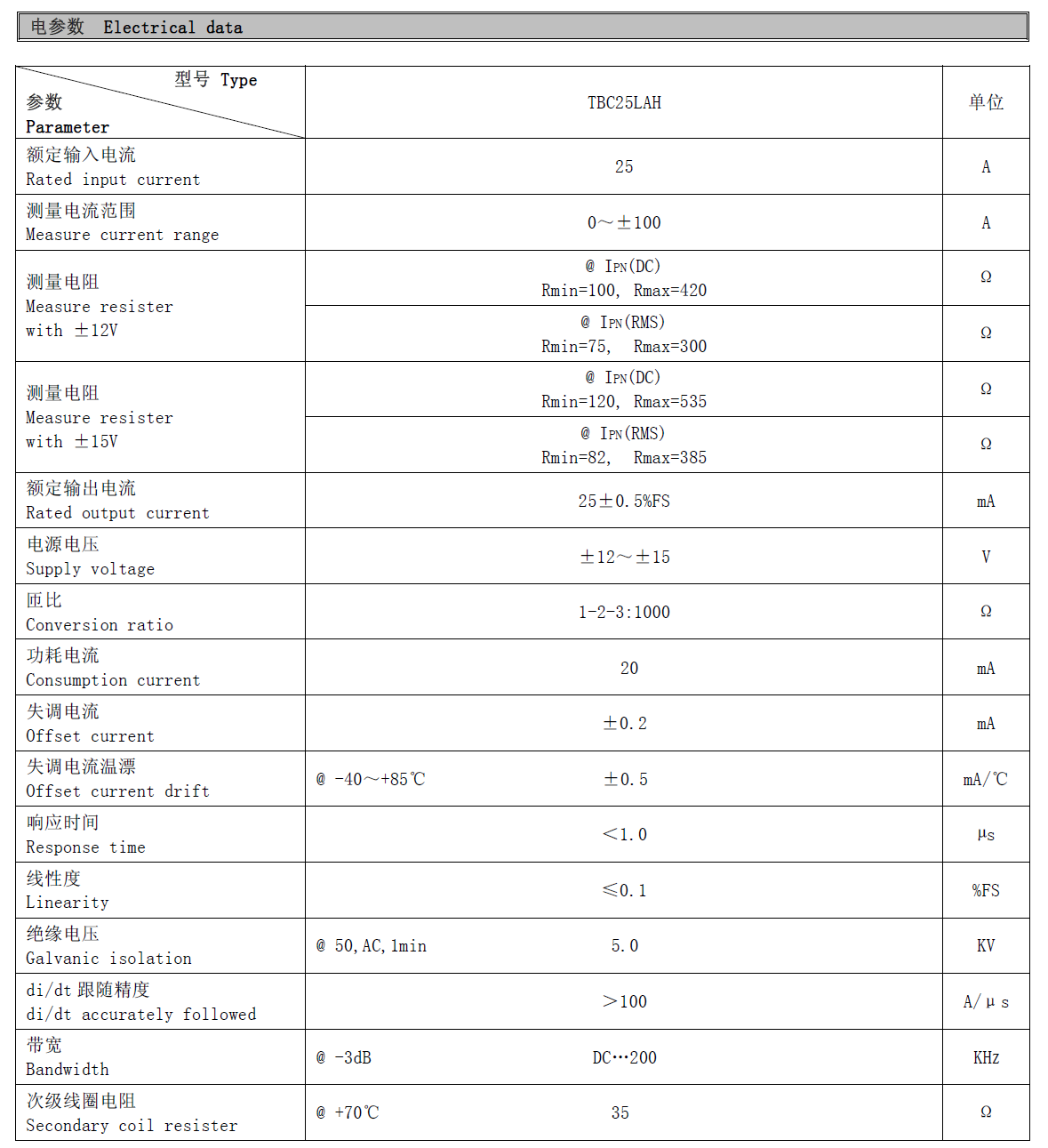 南京托肯TBC25LAH霍尔电流传感器/闭环型/PCB安装