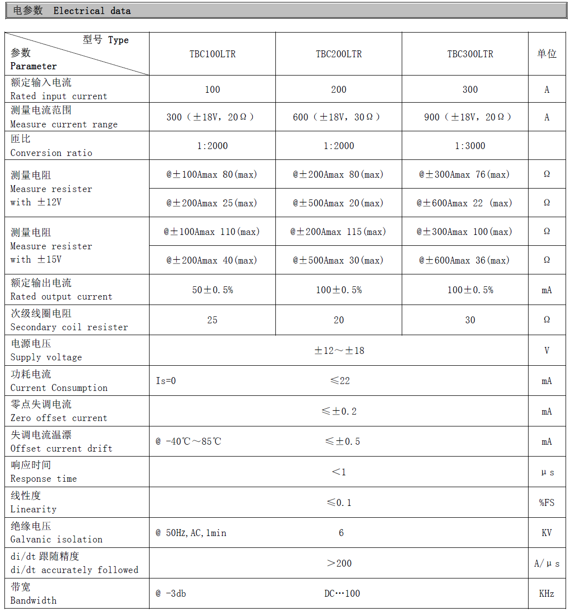 南京托肯TBC-LXA霍尔电流传感器/闭环型/PCB安装