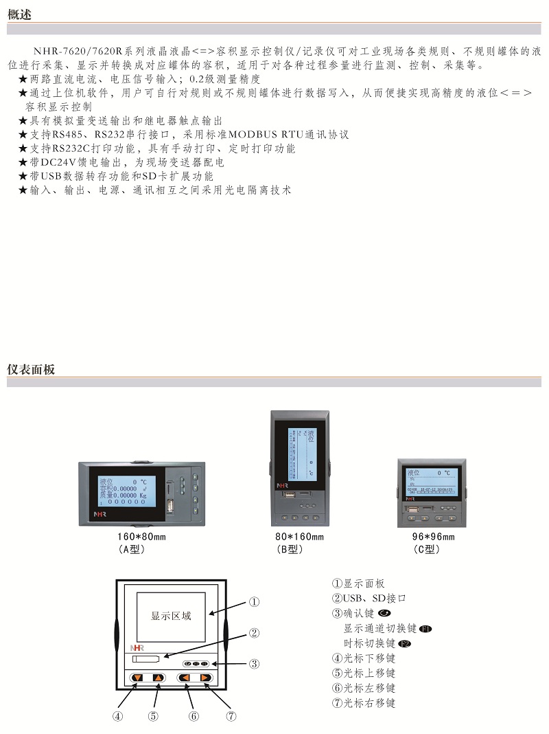 虹润NHR-7620/7620R系列液晶液位<=>容积显示控制仪/记录仪