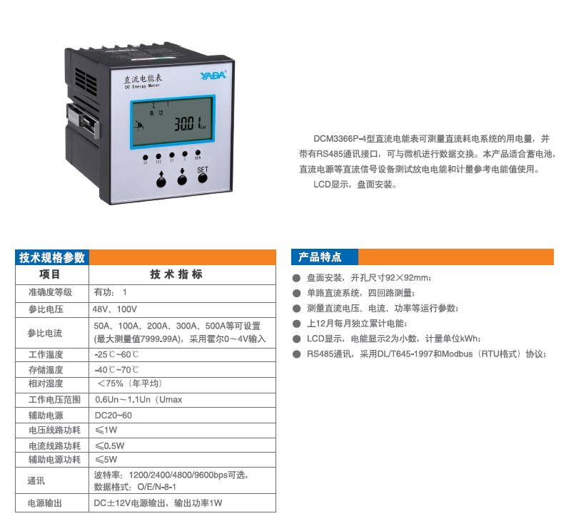 主要功能:同路电压,4回路直流电能、电流、功率测量,RS485通讯