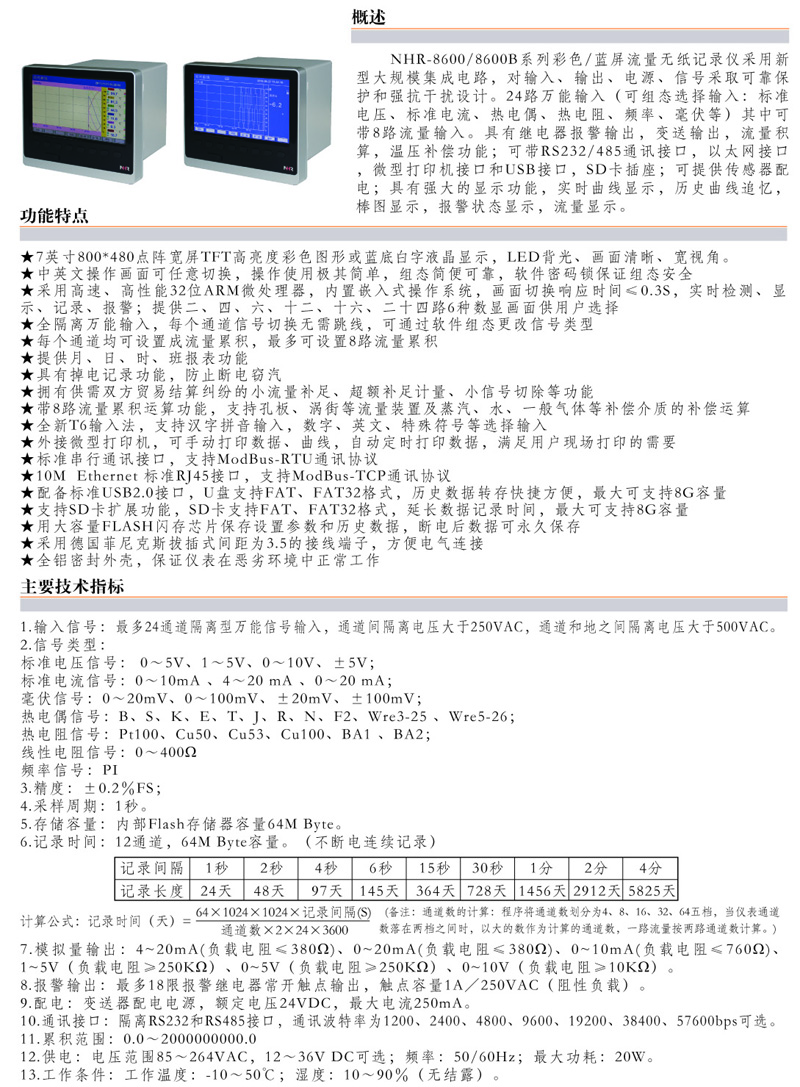 虹润NHR-8600/8600B系列8路彩色/蓝屏流量无纸记录仪