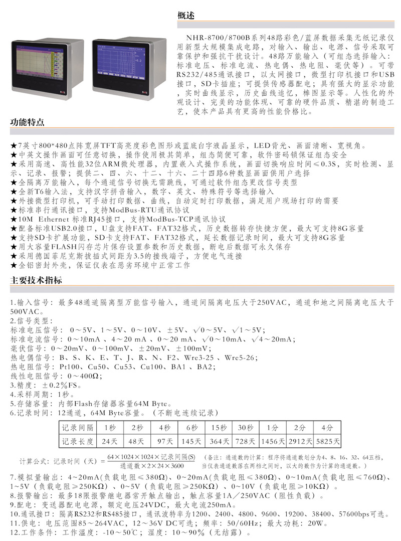 虹润NHR-8700/8700B系列48路彩色/蓝屏数据采集无纸记录仪