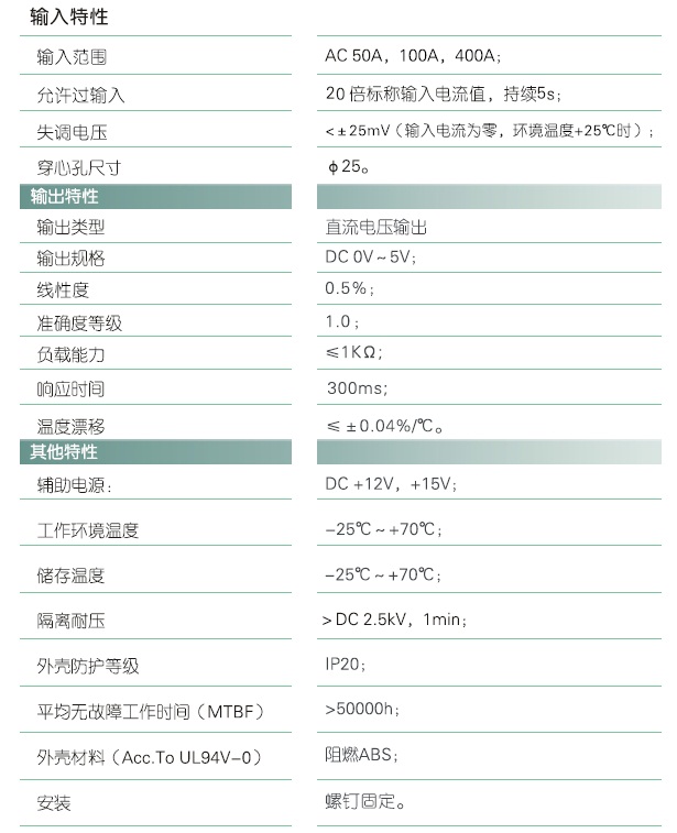 本产品采用电磁原理,对电网中的交直流电流进行实时测量,采用精密恒流技术和线性温度补偿技术,将其变换为标准信号输出,具有过载能力强、高隔离等特点。