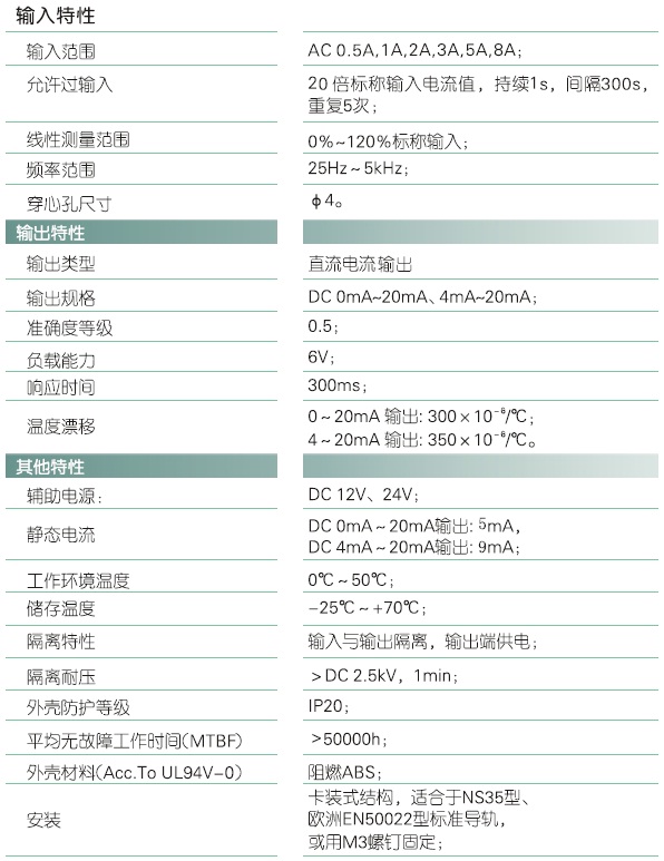 • 输入规格:AC 0-8A范围可选