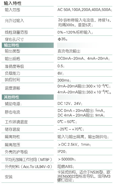 本产品采用特制隔离模块,对电网和电路中的交流电流进行实时测量,将其变换为0mA~20mA或4mA~20mA直流电流(IZ)输出;具有高精度、高隔离、宽频响、低漂移、低功耗、温度范围宽、抗干扰能力强等特点。本产品采用卡装式结构,端子接线,安装方便,适用于电源设备、电力网监测自动化系统、工控监测系统、铁路信号系统等。